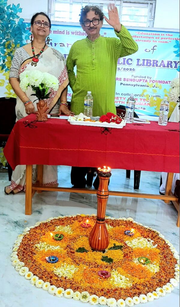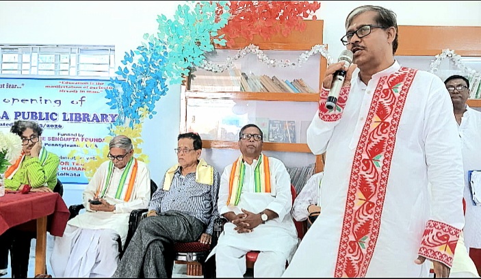 বিশিষ্ট বিজ্ঞানী ও সমাজসেবী ডঃ অরূপ কুমার সেনগুপ্ত এর পৃষ্ঠপোষকতায় নির্মিত এই গ্রন্থাগারের আনুষ্ঠানিক উদ্বোধন মঞ্চে তিনি ও তাঁর সহধর্মিনী সুস্মিতা সেনগুপ্ত উপস্থিত ছিলেন। ফিতে কেটে এবং প্রদীপ প্রজ্জ্বলন করে উদ্বোধন করার পর ডঃ সেন গুপ্ত বলেন- “এই গ্রন্থাগারটি সার্বজনীন অর্থাৎ সর্বসাধারণের ।
