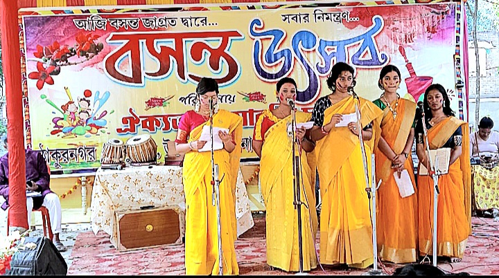 নীরেশ ভৌমিক : বিগত বৎসরগুলির মতো এবারও বসন্ত উৎসবের আয়োজন করে চাঁদপাড়ার ঢাকুরিয়া ঐক্যতান আবৃত্তি চর্চা কেন্দ্রের সদস্যগণ।