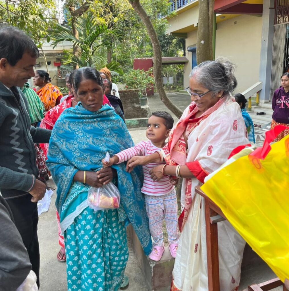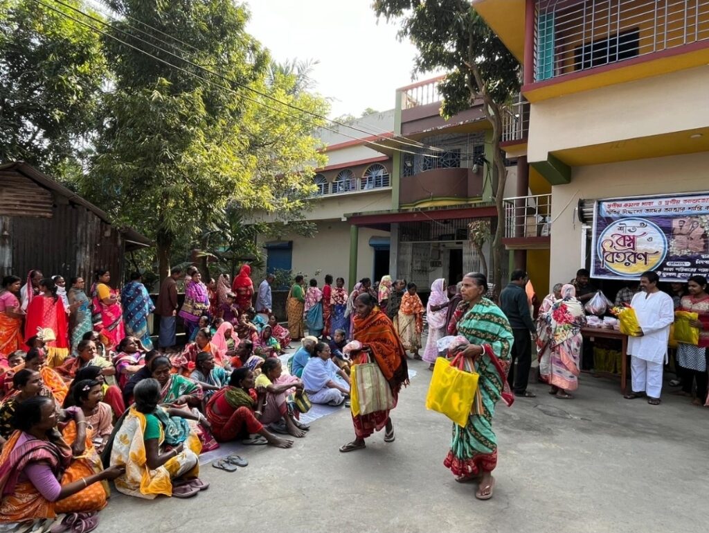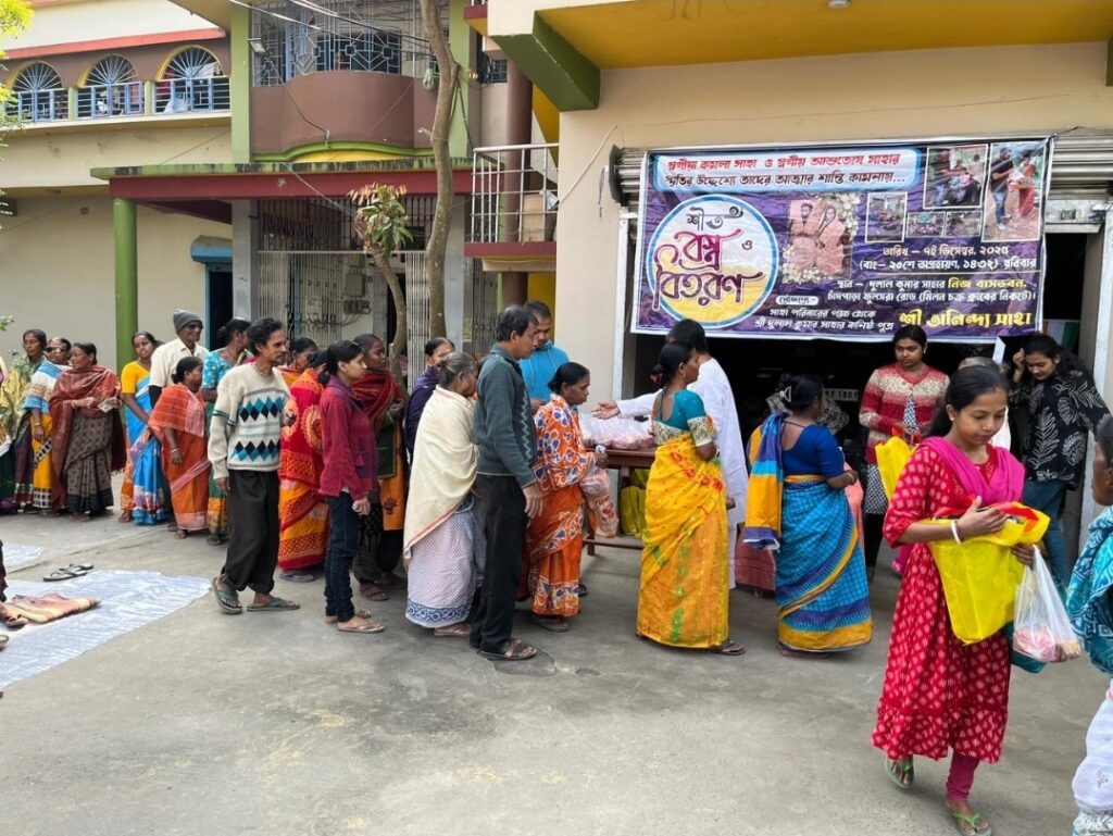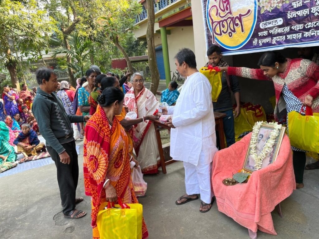 প্রয়াত ঠাকুরদা-ঠাকুরমার স্মৃতিতে বস্ত্র বিতরণ চাঁদপাড়ায়