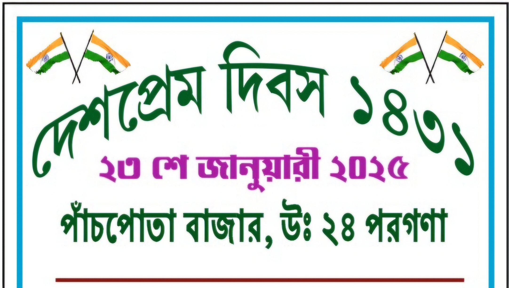 গাইঘাটা ব্লকের পাঁচ পোতা বাজারের সমবায় সমিতি এর প্রাঙ্গণে অনুষ্ঠিত হয় নেতাজি উৎসব। পরিচালনা করেন আ-ম-রা নামক সংস্থা। এখানে সমবায়…